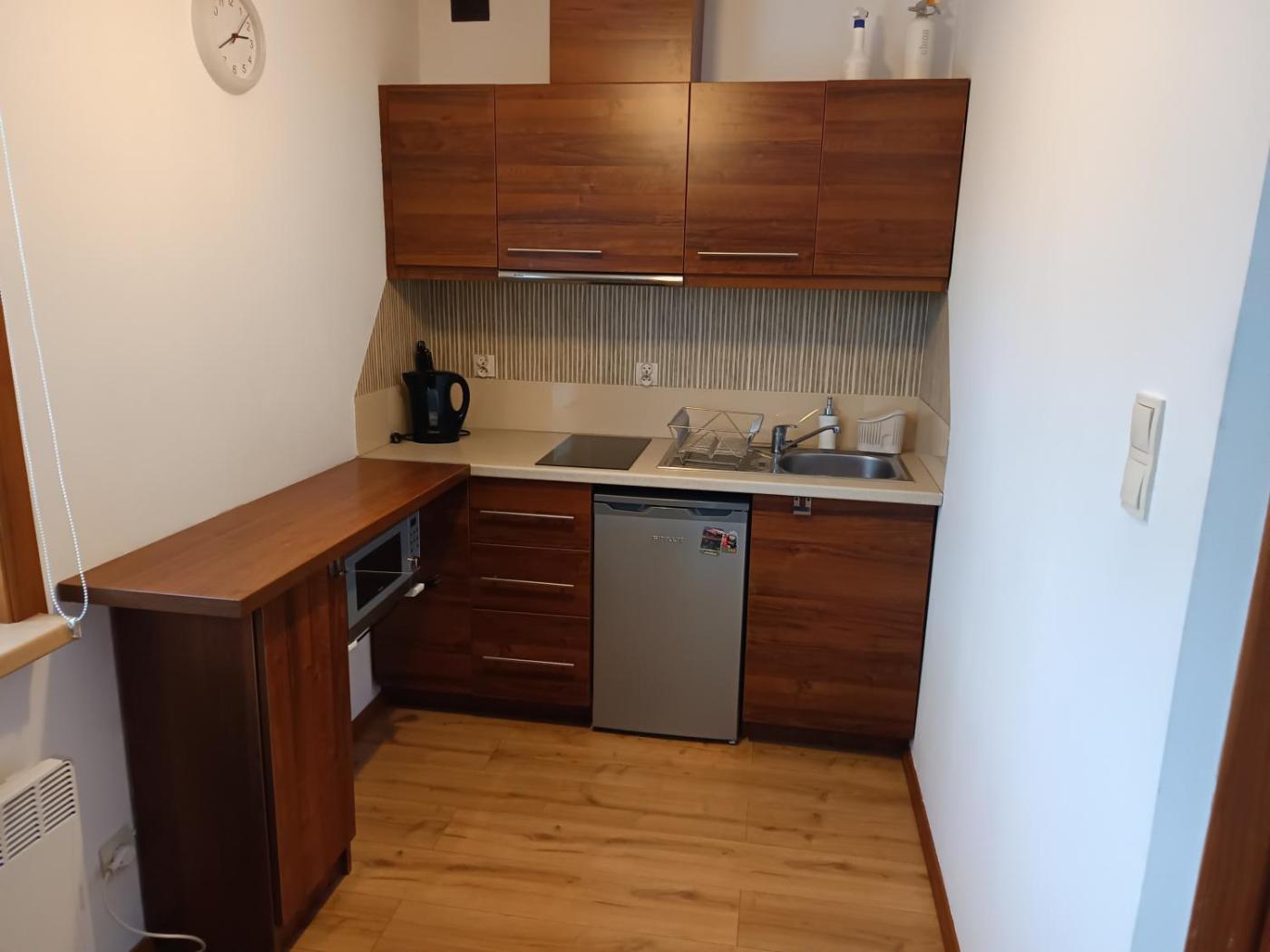 Domek z 2 sypialniami. Featuring a private entrance, this chalet consists of 1 living room, 2 separate bedrooms and 1 bathroom with a shower and a hairdryer. Guests will find a stovetop, a refrigerator, kitchenware and a microwave in the well-fitted kitchen. The chalet also offers a barbecue. Boasting a terrace with garden views, this chalet also provides a washing machine and a flat-screen TV. The unit offers 5 beds. Domek - 7 osobowy. Powierzchnia pokoju ok.: 50 mkw.