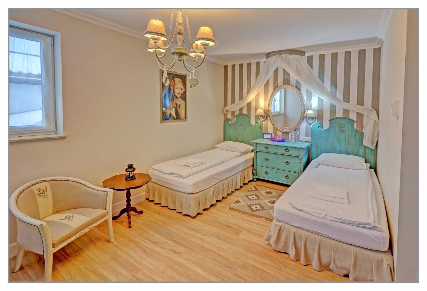 Pokój dwuosobowy. The double room features air conditioning, a wardrobe, as well as a private bathroom boasting a shower and a hairdryer. This double room has parquet floors, heating and a flat-screen TV. The unit has 1 bed. Pokój Dwuosobowy - 3 osobowy. Powierzchnia pokoju ok.: 12 mkw.