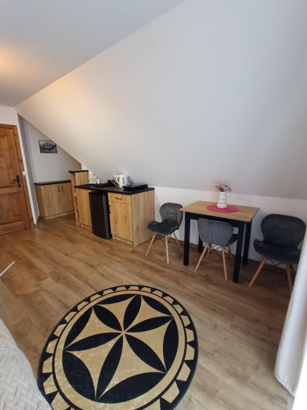 Pokój Dwuosobowy z widokiem na góry. Guests can make meals in the fully equipped kitchenette that has a stovetop, a refrigerator and kitchenware. The double room features a wardrobe, an electric kettle, a balcony with mountain views as well as a private bathroom boasting a shower. The unit has 1 bed. Pokój Dwuosobowy - 2 osobowy. Powierzchnia pokoju ok.: 18 mkw. ;