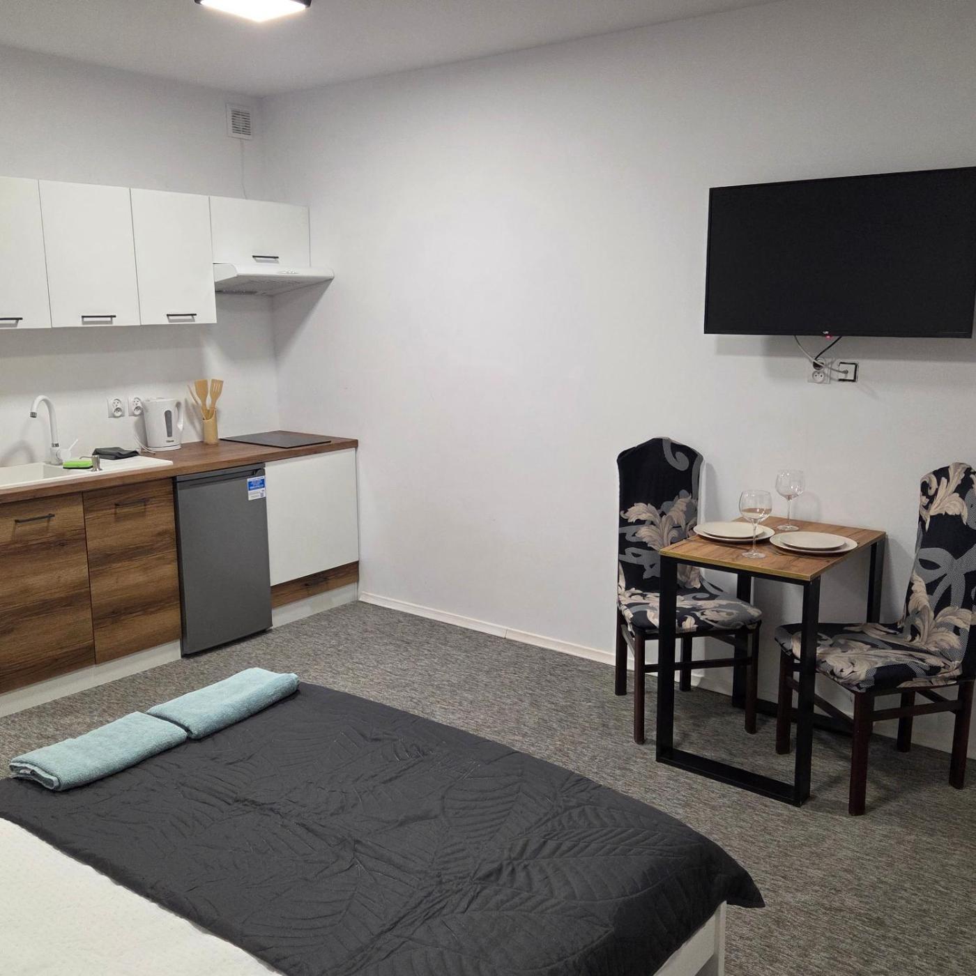 Apartament z 1 sypialnią. This apartment is comprised of 1 bedroom, a kitchenette and 1 bathroom with a shower and a hairdryer. In the kitchenette, guests will find a stovetop, a refrigerator, kitchenware and an oven. The apartment offers a wardrobe, an electric kettle, a carpeted floor, heating and a flat-screen TV. The unit offers 1 bed. Apartament - 2 osobowy. Powierzchnia pokoju ok.: 27 mkw. ;