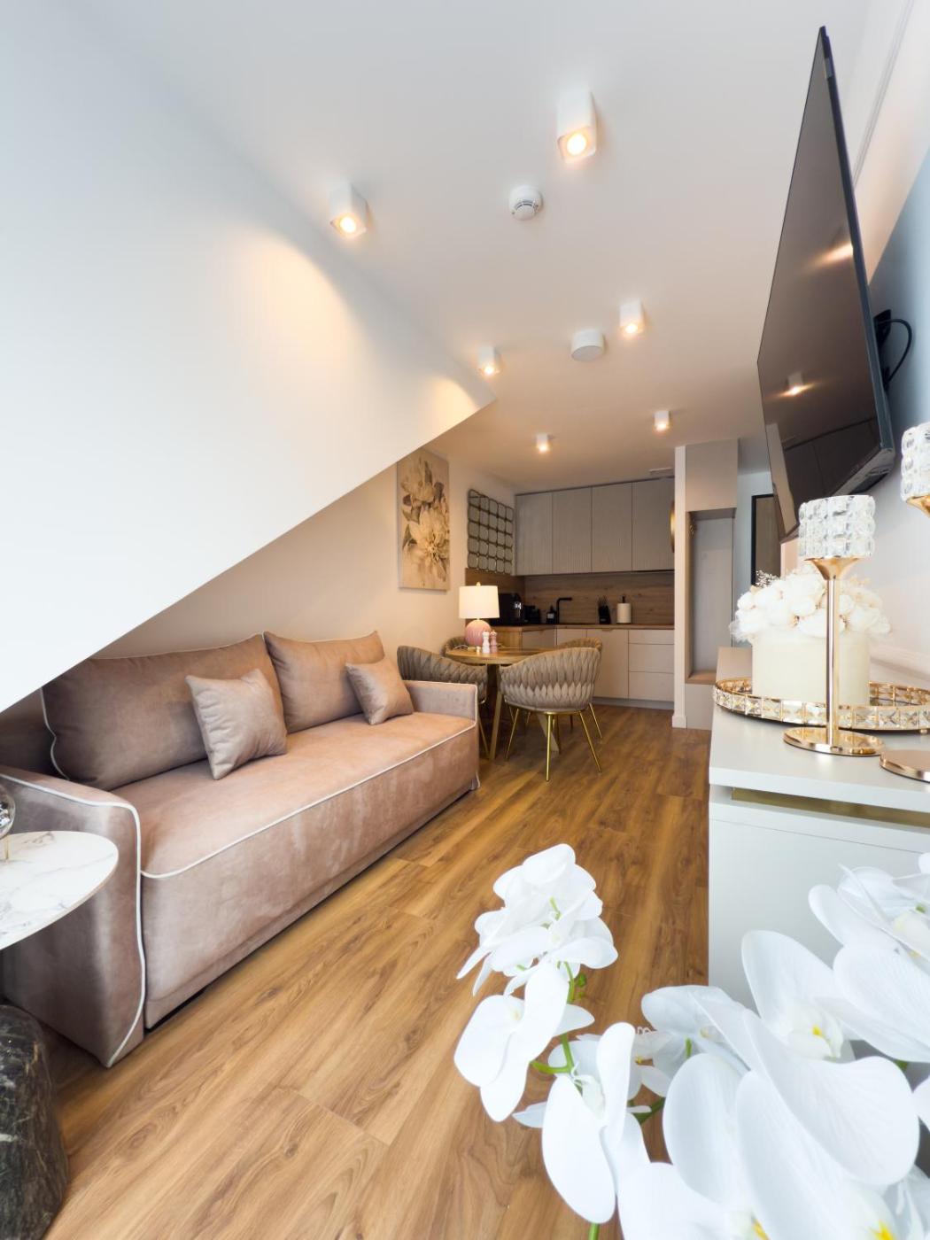 Apartament z 1 sypialnią. The sauna and fireplace are the standout features of this apartment. This apartment includes 1 living room, 1 separate bedroom and 1 bathroom with a shower and free toiletries. The well-equipped kitchenette has a stovetop, a refrigerator, a dishwasher and kitchenware. The air-conditioned apartment offers a flat-screen TV with cable channels, a washing machine, a minibar, a tea and coffee maker as well as garden views. The unit has 2 beds. Apartament - 4 osobowy. Powierzchnia pokoju ok.: 36 mkw.