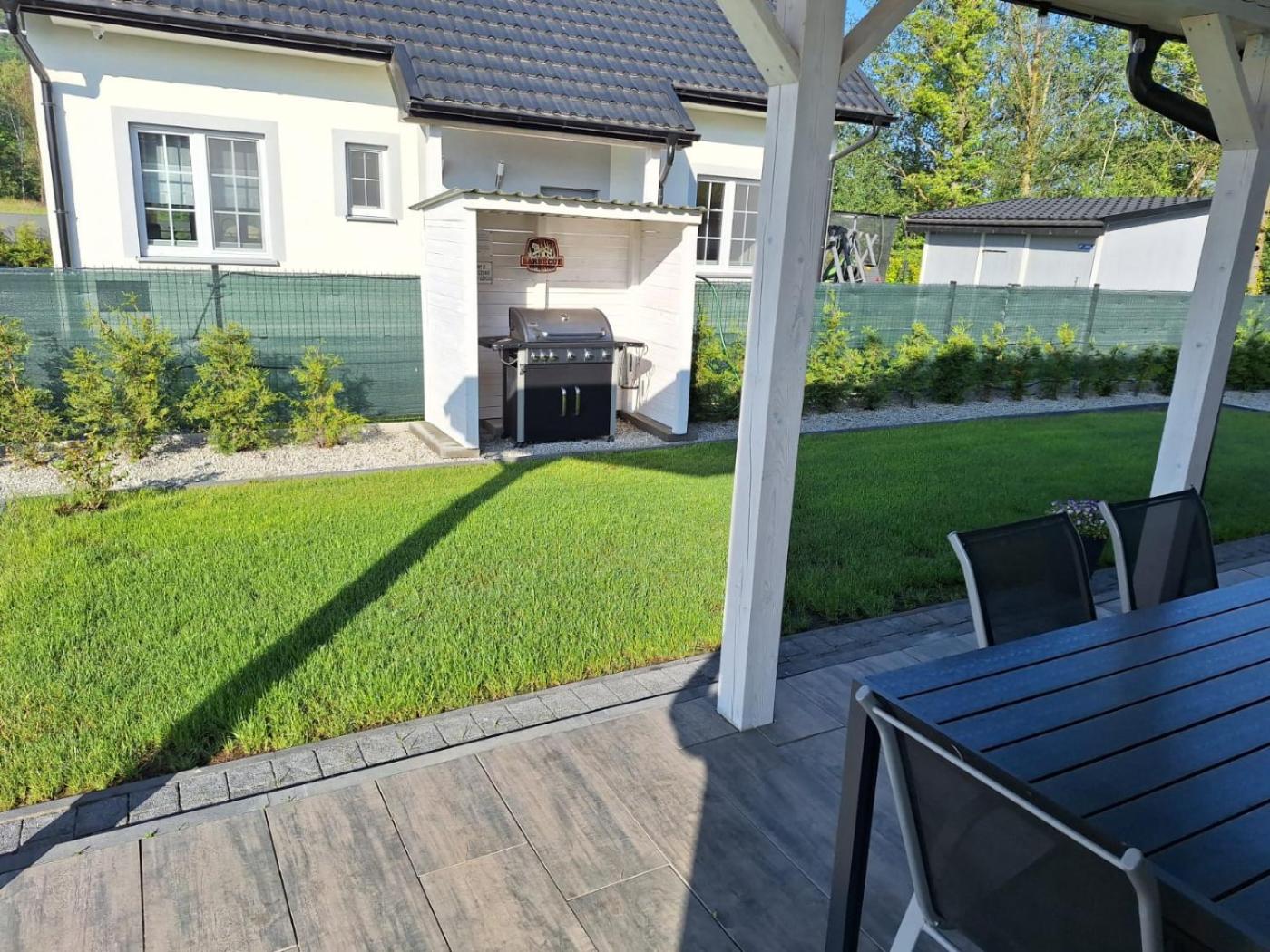 Dom z 4 sypialniami. This holiday homes standout features are the hot tub and sauna. Guests will find a stovetop, a refrigerator, a dishwasher and kitchenware in the kitchenette. The holiday home also comes with a barbecue. The spacious holiday home features air conditioning, a washing machine, a terrace with garden views as well as a shared bathroom boasting a shower. The unit has 11 beds. Dom wakacyjny - 14 osobowy. Powierzchnia pokoju ok.: 144 mkw.