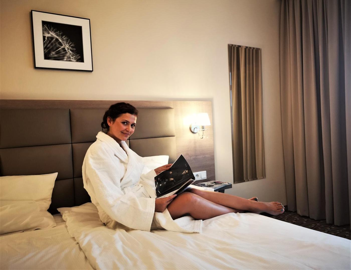 Pokój Dwuosobowy typu Deluxe. The spacious double room features a tea and coffee maker, a wardrobe, a balcony with garden views as well as a private bathroom boasting a shower. The unit has 2 beds. Pokój Dwuosobowy - 2 osobowy. Powierzchnia pokoju ok.: 26 mkw. ;