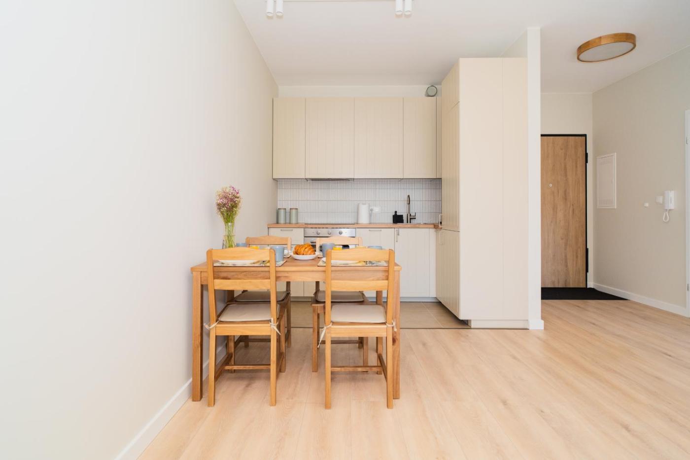 Apartament z 1 sypialnią i balkonem. This apartment comprises 1 living room, 1 separate bedroom and 1 bathroom with a shower and free toiletries. Meals can be prepared in the kitchenette, which comes with a stovetop, a refrigerator, a dishwasher and kitchenware. The air-conditioned apartment provides a flat-screen TV with cable channels, a washing machine, a tea and coffee maker, a seating area as well as city views. The unit offers 2 beds. Apartament - 4 osobowy. Powierzchnia pokoju ok.: 40 mkw.