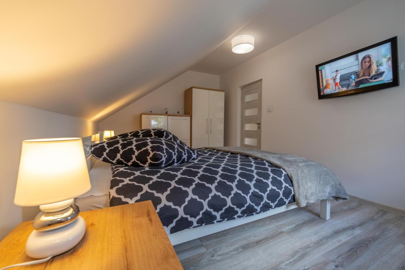 Apartament. This apartment features 1 living room, 1 separate bedroom and 1 bathroom with a shower and free toiletries. Guests will find a stovetop, a refrigerator, a dishwasher and kitchenware in the kitchenette. The apartment also comes with a barbecue. The apartment features a tea and coffee maker, a dining area, a wardrobe, a flat-screen TV, as well as garden views. The unit has 2 beds. Apartament - 4 osobowy. Powierzchnia pokoju ok.: 50 mkw. ;