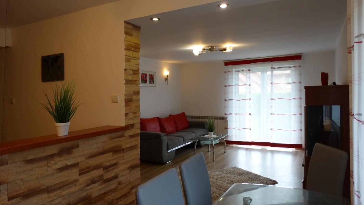 Apartament z widokiem na ogród. Featuring a private entrance, this apartment consists of 1 living room, 1 separate bedroom and 1 bathroom with a bath and a shower. Guests will find a stovetop, a refrigerator, a dishwasher and kitchenware in the well-fitted kitchen. The apartment also offers a barbecue. This apartment features soundproof walls, flat-screen TV with streaming services, garden views, as well as winechampagne for guests. The unit offers 3 beds. Apartament - 6 osobowy. Powierzchnia pokoju ok.: 55 mkw. ;
