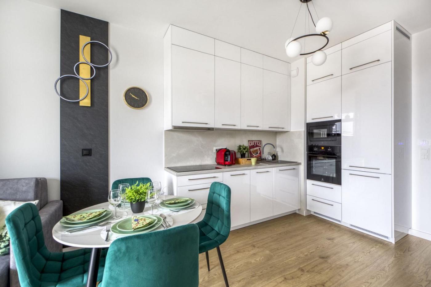 Apartament z 1 sypialnią. This apartment features 1 living room, 1 separate bedroom and 1 bathroom with a shower and free toiletries. Guests can make meals in the kitchen that has a stovetop, a refrigerator, a dishwasher and kitchenware. The air-conditioned apartment features a flat-screen TV with streaming services, a washing machine, soundproof walls, a tea and coffee maker as well as city views. The unit has 2 beds. Apartament - 4 osobowy. Powierzchnia pokoju ok.: 34 mkw.
